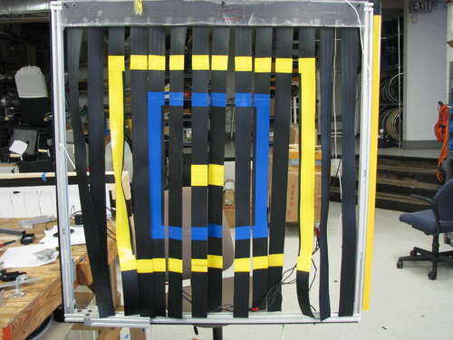 Utilizar una perforadora de tela para crear agujeros en el material del cinturón de seguridad coherente con la separación de la economía las tuercas en T para tornillo de la tela en el bastidor del 80/20. Entonces, coloque la cubierta en el destino con economía T-tuercas y tornillos en el cinturón de seguridad horizontal con el adjunto vertical correas – use las arandelas de dos agujeros para los extremos para más ayudan y utilizan las arandelas de un agujero que son equidistantes en la mitad del material del cinturón de seguridad horizontal.