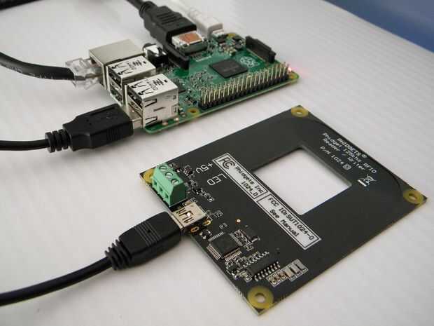Conecte el lector a un puerto usb de frambuesa y un monitor