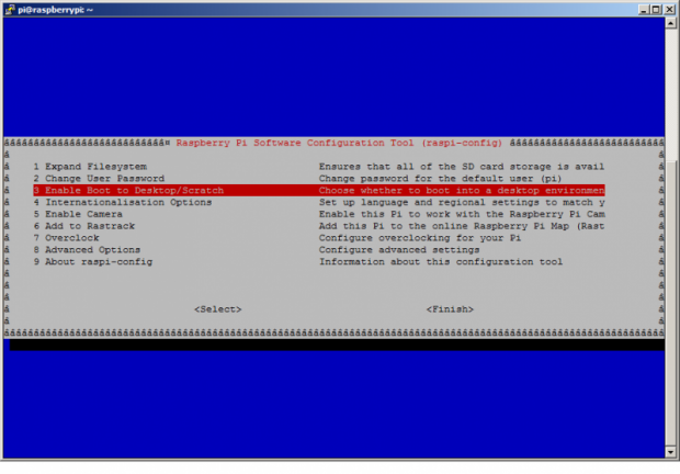 Para asegurarse de que su frambuesa pi botas tipo escritorio el comando