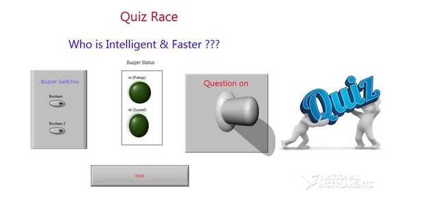 Se produce otra condición que en un concurso, cuando timbre de un jugador, ningún otro jugador de timbre no debe se activan, para los que tenemos un valor booleano "Pregunta sobre" que se desactiva tan pronto como el valor del contador de tiempo se observa en la condicional así lo que nos permite bloquear todas las entradas después de la primera entrada. Este booleano "Pregunta sobre" está conectado a otro bucle condicional que facilita la acción de tipo "Primero más rápido los dedos". Este bucle condicional también establece al temporizador Indicador valores a valor inicial '0' y convierte las entradas del jugador en FALSE. (es decir, el sistema es reajustado)