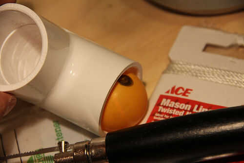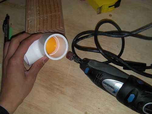 Para la pieza de conector de ángulo de 90 grados, dependiendo de lo que utilizas para el contenedor (o incluso si usted decide usar uno en todo-al principio solía mina cereales crudos a un recipiente de transporte), puede que tenga que dremel los interiores por lo que puede viajar hacia adentro y hacia afuera suavemente. Desde que opté usar una pelotita de ping pong para mis pruebas, en lugar de una cápsula, usé 10 velocidad Dremel de Instructables (WOW) para ahuecar el interior.