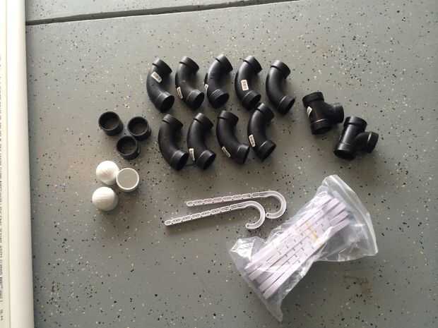Sí estoy utilizando ABS y PVC... Los racores de ABS estaban en liquidación en la tienda de Hardware. Las guarniciones de wye funcionará mejor que una conexión de T. Las conexiones de estrella le permitirá dirigir el polvo o la suciedad hacia la aspiradora. Los codos son largo barrido el polvo o la suciedad no tiene que hacer un giro tan duro.