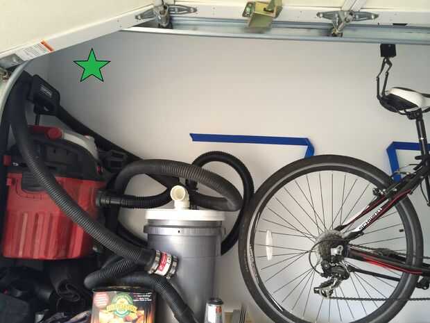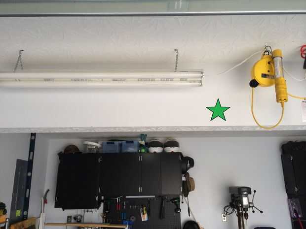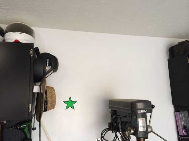 tomé tres áreas diferentes en mi garaje.  Pared frontal de la puerta del garaje, medio centro y pared posterior por mi banco de trabajo. Green star en cada imagen muestra la ubicación.