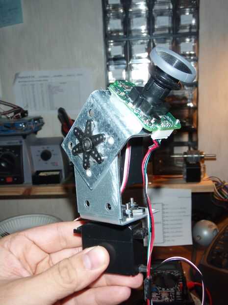 Okey, ahora tenemos el marco y tablero de control. Ahora es el momento para abrir su cámara web y sujete la placa de leva de web al armazón. Es fácil de hacer con pegamento caliente. Puede quitar las conexiones para micrófono y el botón de encendido/apagado. No vamos a necesitar estos. Sabes lo que me refiero cuando abres tu webcam =)