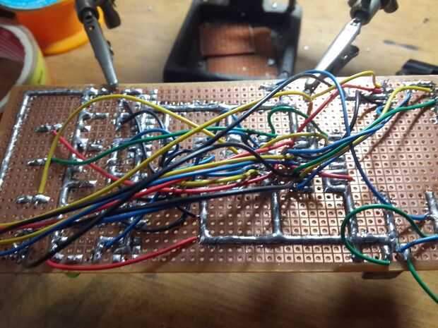 Esta es la vista posterior de la votación de proyecto de sistema con algunos cables de soldadura y puente.
