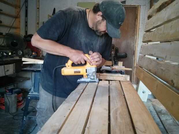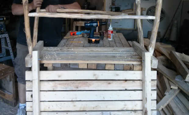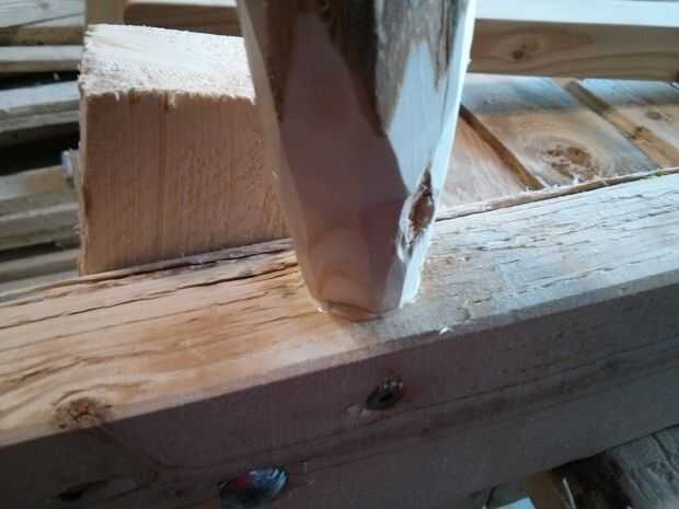 Para colocar la pierna en el asiento, utiliza tornillos de 3", pero crea un borde plano donde se encuentra con la placa base. Esto da más área superficial para hacer contacto y evita que las patas delanteras de una torsión del estrés.