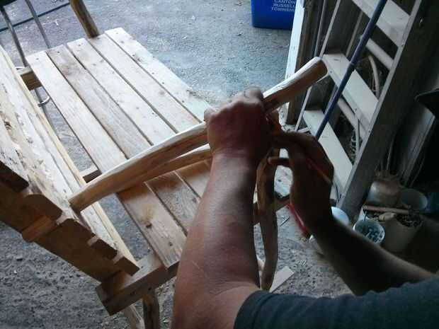 Quería que el brazo descansa ángulo hasta ligeramente desde la espalda hacia el frente, por lo que me mide 2 pulgadas menores que la longitud restante de la pata delantera de la silla que ha cónico. Como los tableros base en la parte posterior entra dentro de las placas base para el asiento, hay una mayor proyección de los tableros de 1 x 3", así que en lugar de muescas taladré un agujero en cada lado, apenas lo suficientemente grande como para que el resto del brazo pasar a través. He creado superficies planas, en los extremos de los restos del brazo que pasan a través del orificio, por lo que se podría atornillar al ras con la placa base en el respaldo. Para sujetar la pata delantera para el resto del brazo, primero marcada donde quería que unen, luego perforar un agujero de 7/8" en cada uno. Luego llenó el agujero con pegamento para madera y había martillado en su lugar. Puede Agregar fuerza adicional introduciendo un tornillo a través del resto del brazo en la pierna, pero no debería ser necesario si usted había ahusada correctamente.