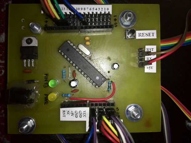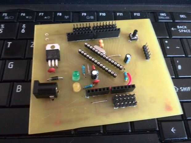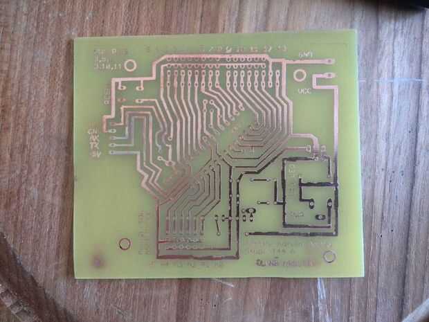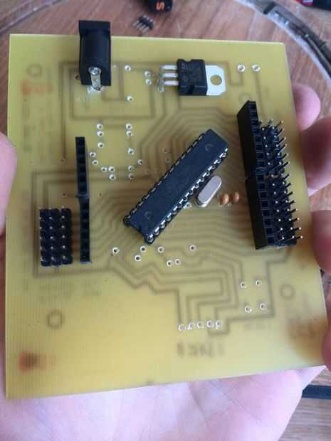 Después de decapado y limpieza PCB terminado, he perforado todos los agujeros para los componentes y conectores, he soldado a todos, he comprobado para cortocircuitos y el resultado puede verse en la última foto.