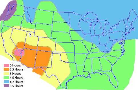Te dice cuantas horas de pleno sol se puede esperar de manera realista para conseguir cada día. Toma en cuenta latitud y clima.