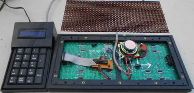 Este proyecto utiliza dos Arduino, Arduino primeros funcionó como un remitente que incluía un teclado PS2 y un mini LCD de entrada de número. Mientras que el otro Arduino es funcionó como un receptor que activan un sonido "ding-dong" y mostrar el número en el panel de LED de 32 x 16.