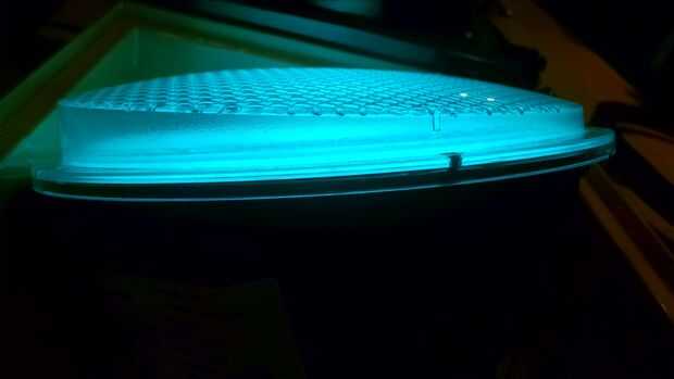 Terminé usando un difusor de luz de plástico delgado "Grupo prisma" en su lugar. Simplemente localizar la lente interior para cortar al tamaño correcto y agregado unas pocas capas hasta que ya no era ciego y llamada un día. Una cosa a mencionar, el grupo prisma se rompe como el vidrio al cortar con unas tijeras. Tengo uno más delgado tenían que no puede haber ayudado, pero todavía lo recomendaría como una posible solución porque hizo la luz incluso más dispersos de lo que ya era. Otra cosa a mencionar es, noté las lentes exteriores verdes y amarillas tenían un ligero ángulo para ellos. He hojeado que estar apuntando hacia arriba en vez de hacia abajo, para ayudar con el brillo también.