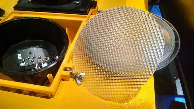 Había un pequeño potenciómetro en el tablero de conductor de cada luz (mi mejor conjetura es que esto es para ajustar la corriente de la placa principal del controlador para el tablero del LED, pero corregidme si estoy equivocado por favor!). Incluso con dio vuelta todo el camino, el brillo era todavía demasiado brillante. "supongo que estas cosas se hacen para ser vistos millas de distancia" pensé... El semáforo es demasiado caro para freír accidentalmente una tarjeta de conductor o rociar el tinte de los lentes. Algo me dice que no voy a poder pedir uno nuevo o bien. El hacker más aventurero podría modificar el circuito limitando la corriente, o incluso hacer un PWM y hacer las luces regulable. Heck, que podría incluso eliminar AC todos juntos e instale su propio LED.