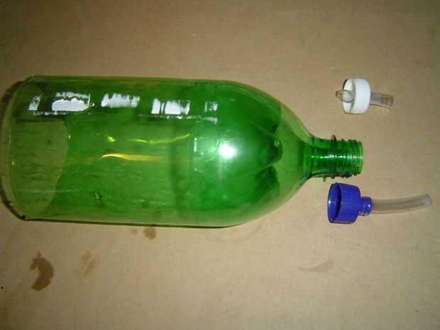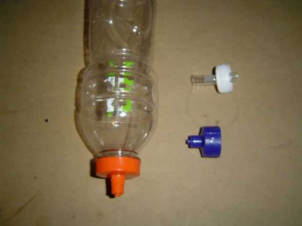 Retire la popular válvula"cosita" de la tapa de la botella de detergente, revelando el pezón que se deslice la tubería de 3/8 de pulgada (no fácil). La tapa sólo pasa a ser perfecto para esto y se ajusta firmemente sobre las roscas de la botella pop de 1 pulgada.