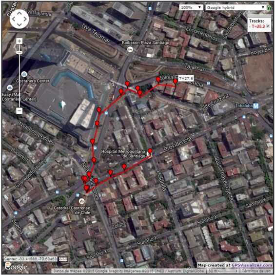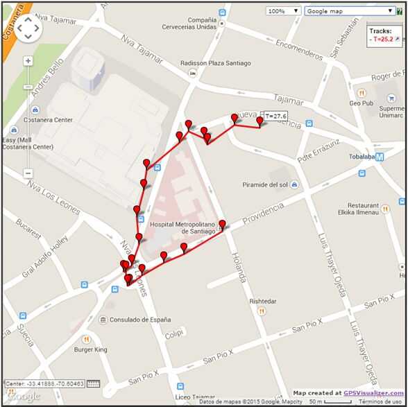 Ahora tenemos el mapa con el recorrido y si posicionamos el cursor sobre los puntos podremos ver la temperatura en cada uno de ellos.
