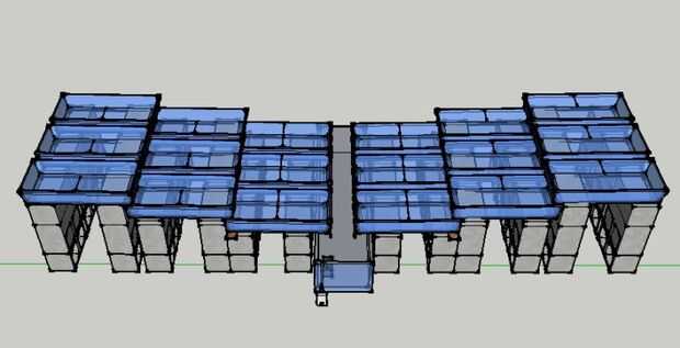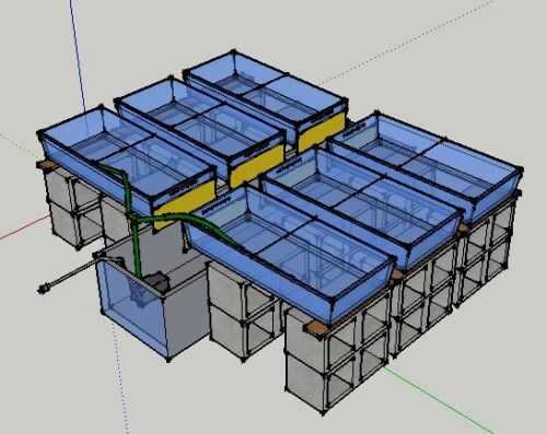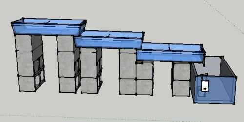 Otra idea sería apilarlos extremo a extremo. Aunque ten en cuenta que la bomba sólo puede bombear agua tan alto. La LPH también disminuye cuanto más alto vayas.