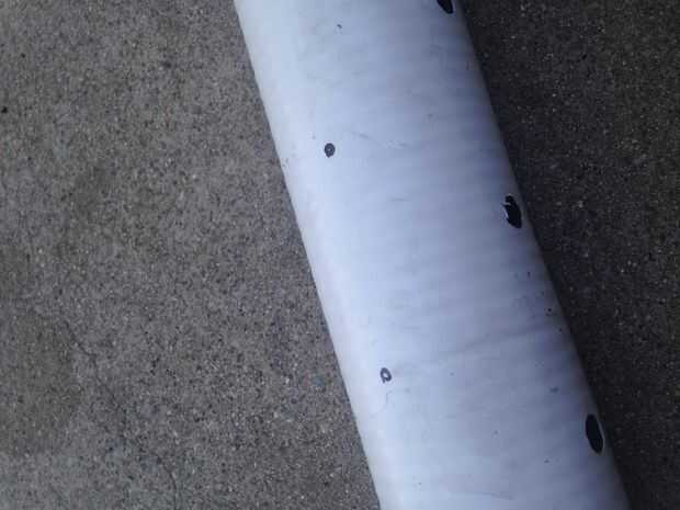 Ahora con un rotulador marqué las áreas donde se ser taladrar el agujero para las plantas. Había comprado un tubo de PVC que tenía algunos agujeros ya cortadas. Creo que es mejor hacerlo sin los agujeros así que usted puede poner la cantidad preferida de los agujeros a su deseo. Además de los agujeros precortados necesitan ser más grande, así que volver a cortar hace un poco difícil. Me acabo de comprar éste porque no tenían ya los sólidos.