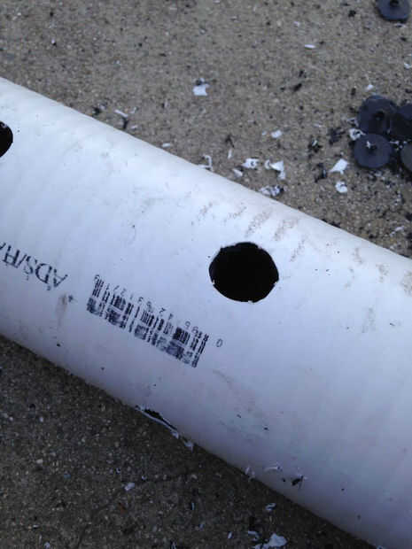 Taladre los orificios. Yo 7/8" pero usted quizás desee utilizar un tamaño diferente. tal vez más grande. ir lento, usted conseguirá un corte más limpio.