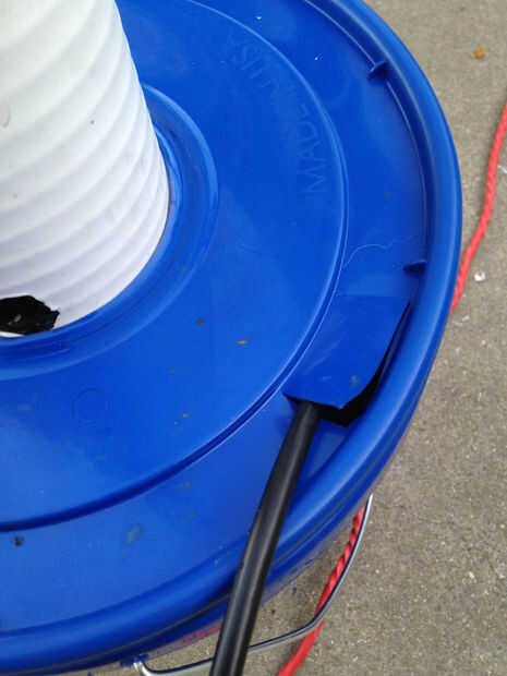 Antes de cerrar la tapa, hacer un poco el corte para que pueda ejecutar el enchufe hacia fuera de allí. Luego, cierre la tapa. Si quieres asegurar el PVC más al cubo te recomiendo aplicar algunos silicona a la base de la tubería de PVC al cubo dentro en la parte inferior. No se aplican a la parte superior porque vas a querer levantar la tapa para agregar alimentos vegetales. Finalmente añadir la tapa a la parte superior del PVC.