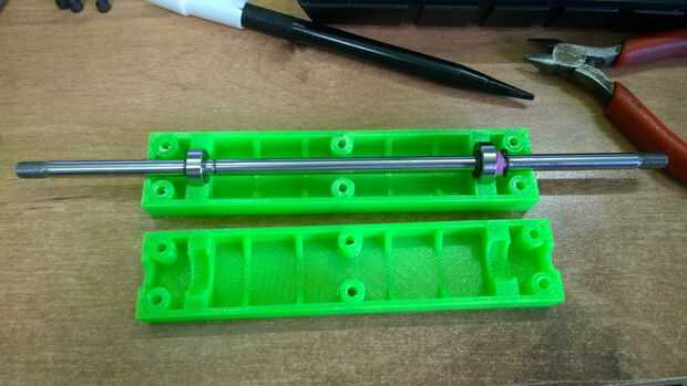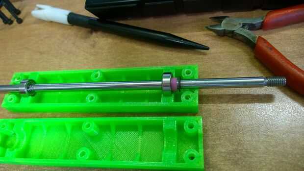 Utilizamos el torno para hacer unas ranuras en la barra para empujar la arandela clip que evita que el eje para mover o caer cuando está vertical. Si el torno no está a mano puede imprimir o pegar el tapón de la barra antes o después del cojinete.