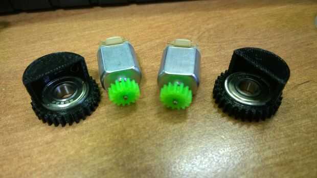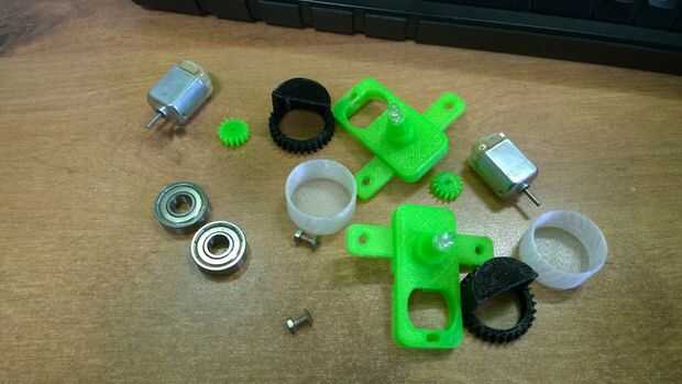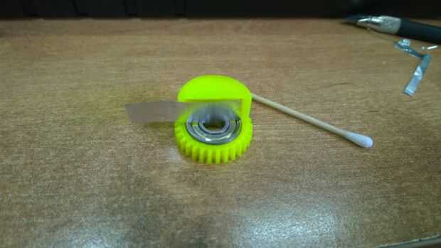 Empuje el pequeño engranaje (motor gear.stl) al eje del motor. Si no que a mano prueba con pinzas.