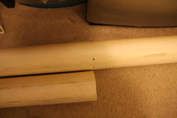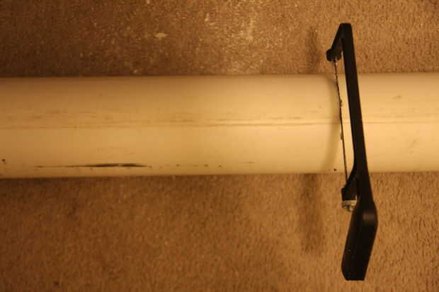 El primer paso es medir y cortar el PVC en la longitud que usted requiere. En mi caso estoy usando 3 piezas de alrededor de 17" piezas. Mi sierra y medición de habilidades no son lo mejor por lo que recomiendo usar las piezas como su cinta de medir en caso de que el primero es de. Habrá suficiente espacio de maniobra más tarde si está apagado por una 1/2" o algo así.