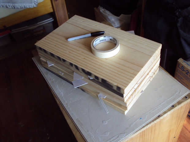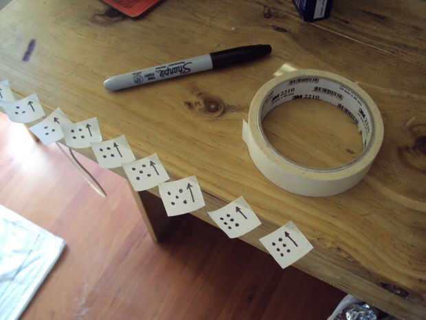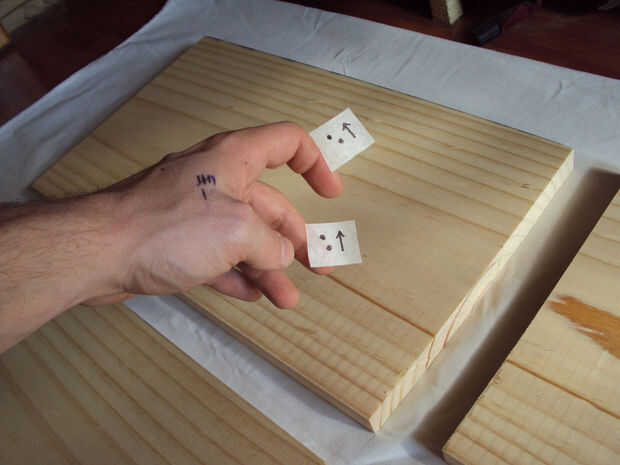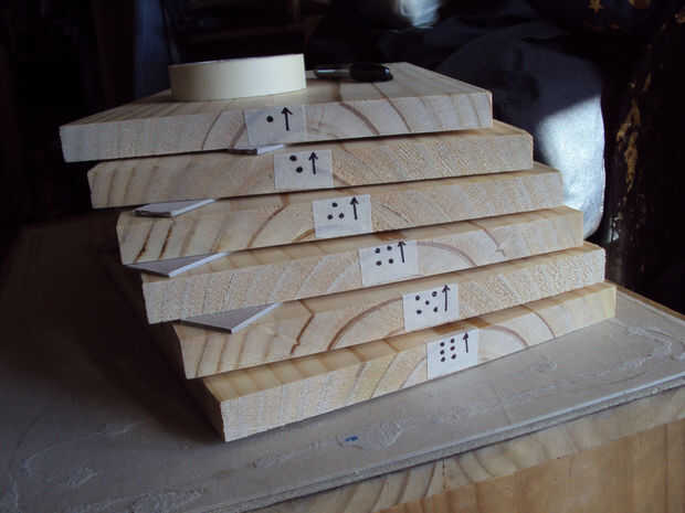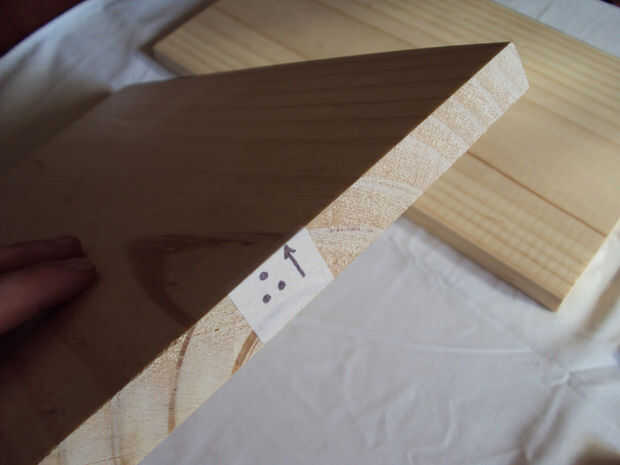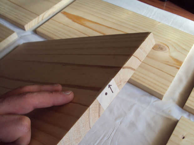 Géneros doce etiquetas, en duplas, con permiso de números 1 a 6 para diferenciar entre las repisas superiores e inferiores (las superiores quedarán a la vista en el mueble final). Selecciona las tablas más lisas para las repisas superiores y etiquétalas con los números impares. Cada repisa Yes llevar dos etiquetas e indica su orientación. Las repisas inferiores se etiquetan con números pares.