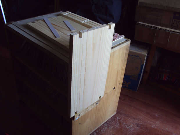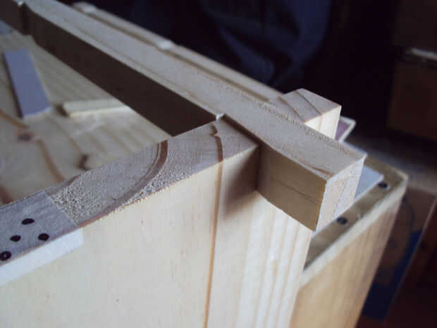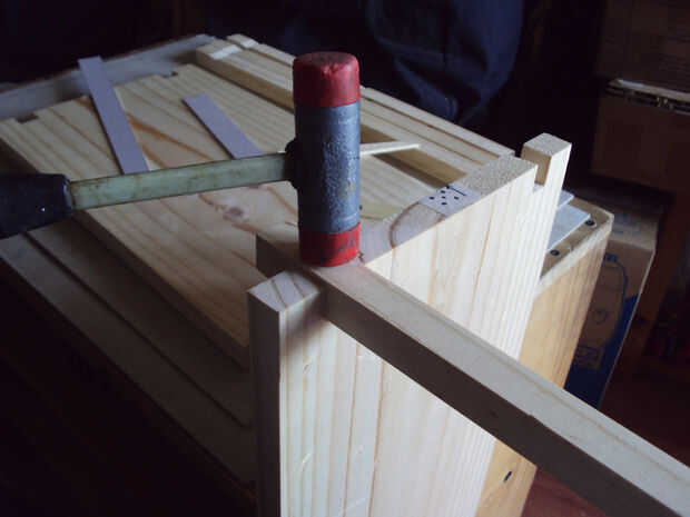 Selecciona una repisa y comenzando por una de sus esquinas y elige un listón del mismo color para probar si el listón cabe en el sacado de correspondiente. Si no cabe, rebaja el sacado en el listón un poco y vuelve a probar si encaja. Si aún no cabe, rebaja los bordes del sacado en la repisa un poco, y vuelve a probar si cabe, hasta el listón encaje en la repisa de forma apretada. A veces puede ser necesario utilizar un mazo de goma, con cuidado, ya al aplicar demasiada fuerza se pueden producir grietas en la repisa. Repite los pasos para todos los puntos de intersección entre las repisas y los listones.