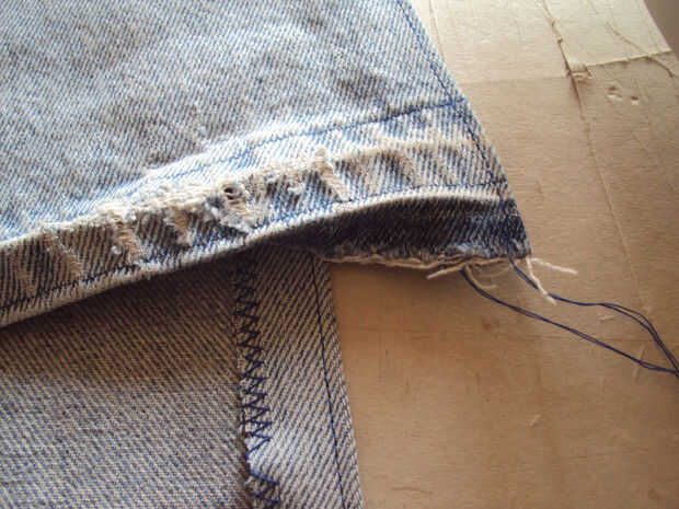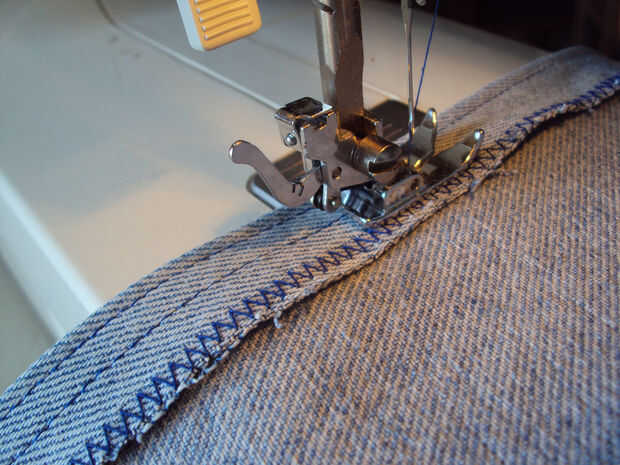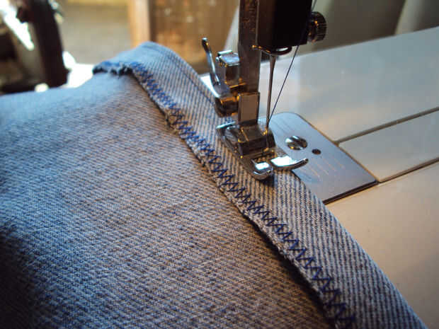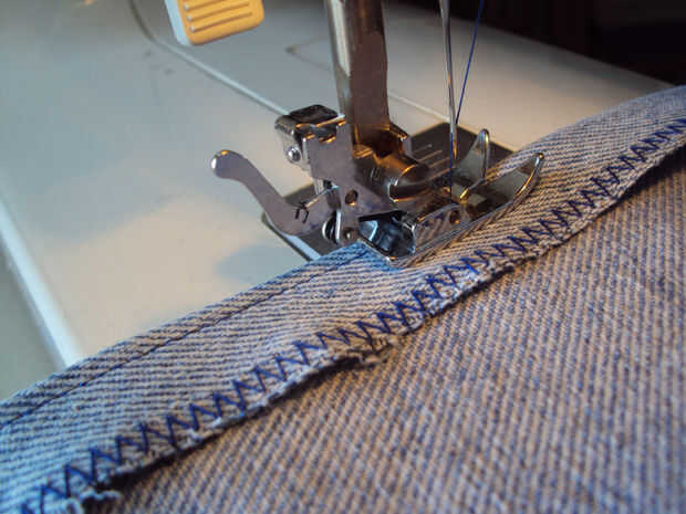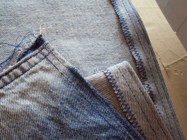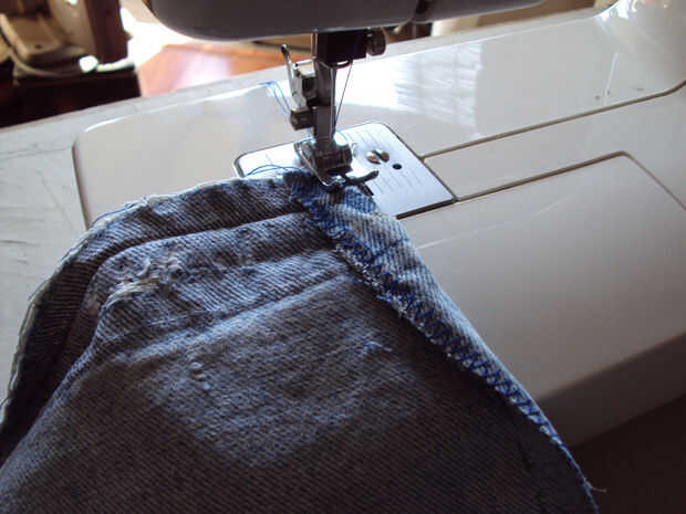 Paso 26: Doblar y coser los bordes largos de la mezclilla