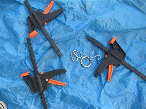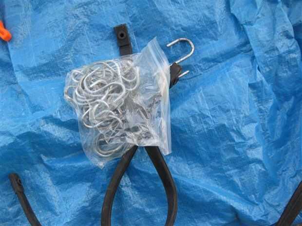 Pared de 1/8 de pulgada de diámetro de ¾ pulgadas de longitud y ganchos en S-1 (usado tres) – no todos los ganchos s se hacen igual. Compré unos pocos y en el proceso de plegado, se rompieron. Por lo tanto, fui con s ganchos de amarre de caucho.