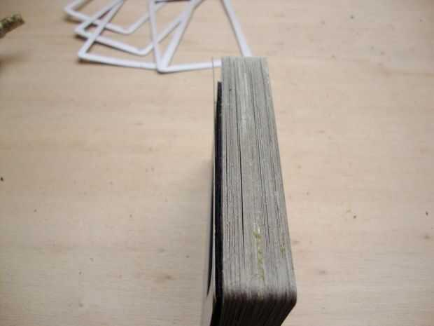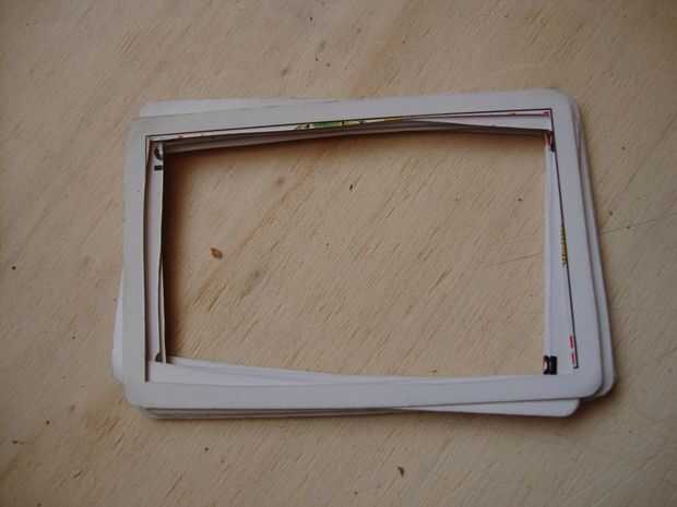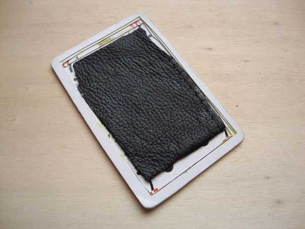 Para cualquier persona que lo hace, la pieza de cuero tendrá que ser más grande que las partes que ha cortado. Por eso, habrá un espacio dejado por el cuero. Necesita cortar 4 tarjetas como en la imagen y pegar alrededor de la piel. Ahora tiene 11 cartas izquierda.