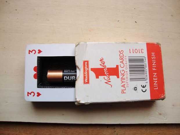 Como se puede ver, es casi idéntica a un paquete normal de cartas. Todavía cabe en el mismo paquete y pesa menos, incluso con una batería!