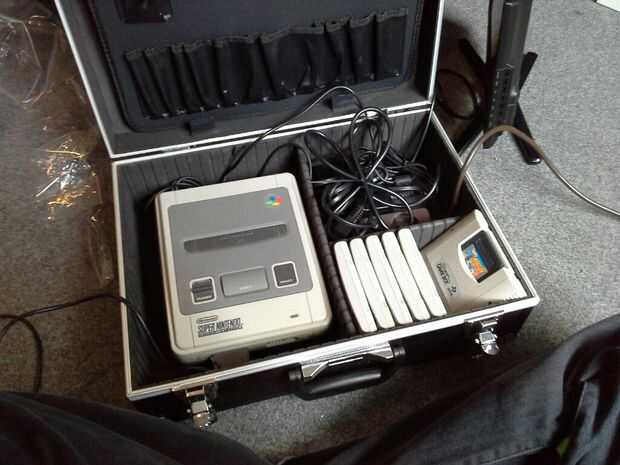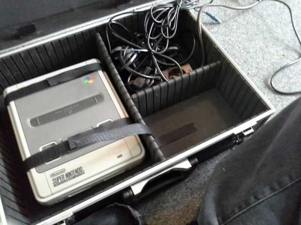 Es tiempo de preparar la maleta. Piense en donde desea colocar sus SNES, almacenar tus cojines, juegos y cables. Separado la maleta en dos partes principales (puede utilizar forma hacerlo). La parte izquierda se utiliza para almacenar la SNES con dos controladores. La parte derecha almacena 9 juegos y el enchufe múltiple.