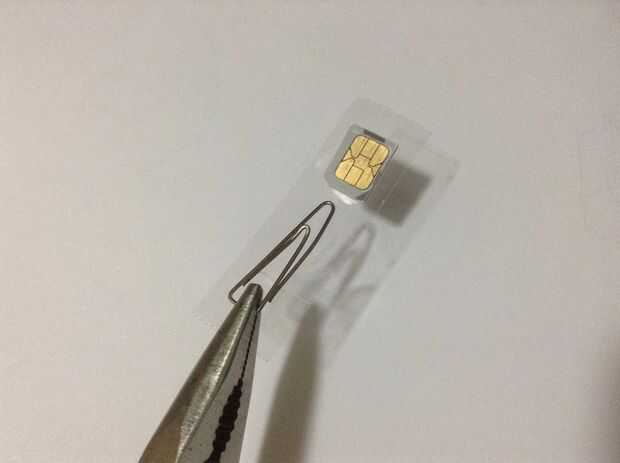 Pegar la tarjeta sim y clip en la cinta, tratar de alinearlos en la línea de centro, dejar tanto hueco como sea posible