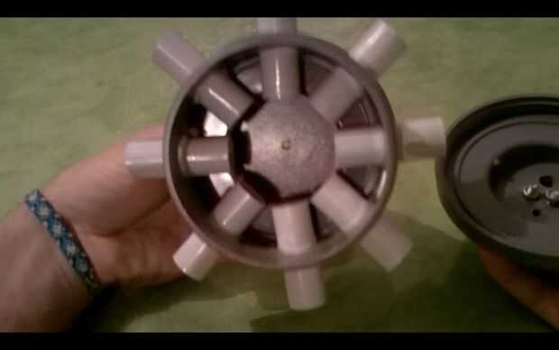 El primer paso entonces fue perforar la pieza Ø 100mm (hacer 8 agujero para las guarniciones; 1 adapatador para 1 planeta), las conexiones en cada orificio encolar. El resultado es algo que parece una araña, por lo que se llamo "la araña de plástico" para los próximos pasos.