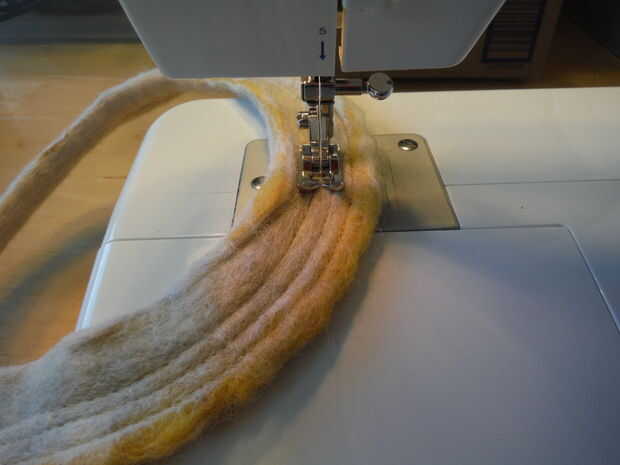 De carácter adicional a los anillos, cosió puntadas rectas en círculos alrededor del anillo hasta que pensé que estaba lleno de suficiente. Había recortado un resbalón poco apagado dentro del ring a mejor, pero no es mucho en cuanto a lo de la circunferencia del planeta. Quería mantener el fieltro anillo apretado alrededor de Saturno.
