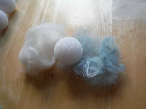 Envuelva la bola de espuma de poliestireno en la lana de color base mecha: