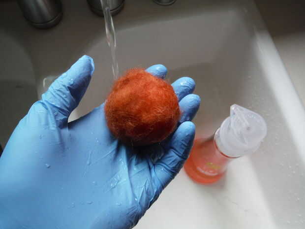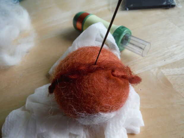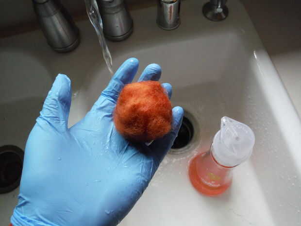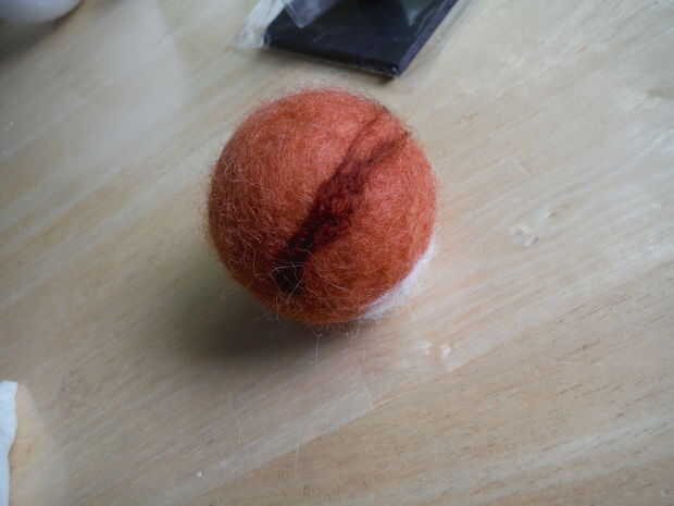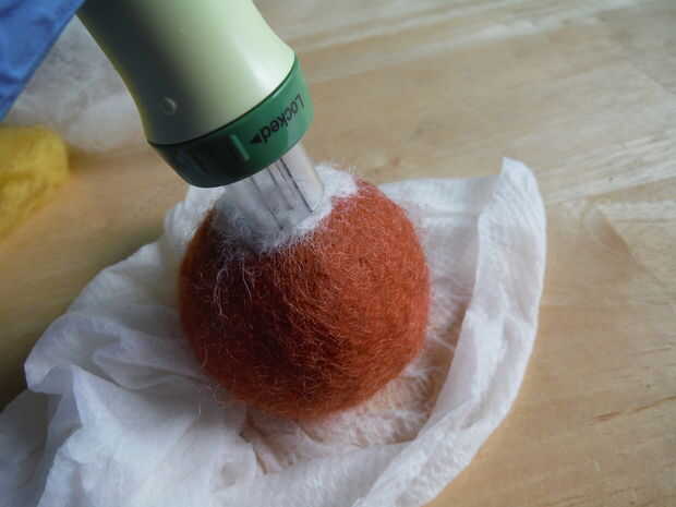 Bueno, ahora que tienes este fieltro mojado abajo, permite añadir en otro paso: batanado en seco. Esto es donde se utilizará el batanado púas lo siente la lana juntos, en lugar de agua caliente y jabón. Utilizar aguja de fieltrar para crear patrones específicos en la superficie de los planetas y no dejar al azar con mojado fieltrar. Todavía mojado sentía el planeta al final, como sólo utilizo la aguja Púa para "virar" los patrones en su lugar y todavía quieren firmemente pegado junto con el wet felting proceso. Podría dejarlo como está, si quieres, pero me encuentro mojado fieltrar el planeta al final le da un gran aspecto cohesivo, como la adición de agua a los lápices de color agua dibujados en el papel--superficie sólo se ve del planeta mejor después de wet felting lana needled abajo.