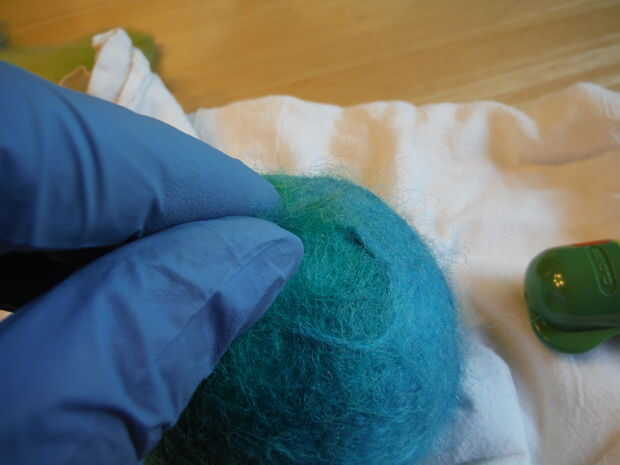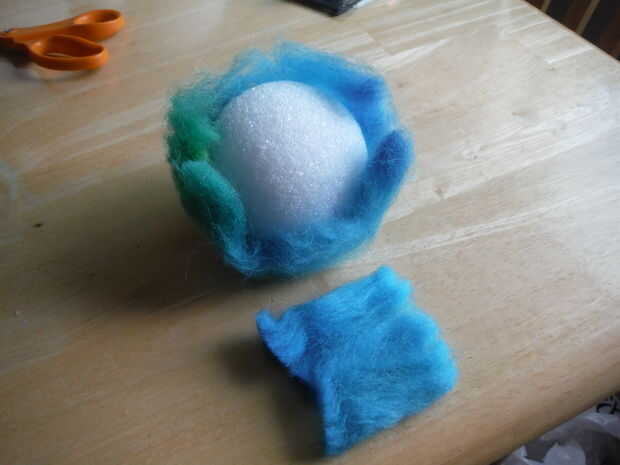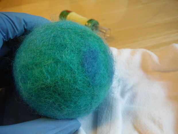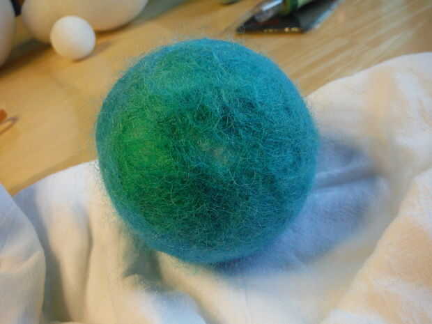 Aproveché de Urano no que ningún patrón planetario real a utilizar como ejemplo de algunos contratiempos de mojado-fieltro, es decir, tener manchas desnudos en el fieltro "suéter". Si después de fieltro húmedo, encuentra algunas áreas desnudas del planeta donde la blanca espuma de poliestireno está mostrando a través de, puede aguja fieltro fieltro en la parte superior el punto de color y mojado-sentía el planeta otra vez. Si encuentras áreas finas en el planeta, puede también pellizcar un poco de fieltro alrededor y pasar en el lugar y luego aplaste con las agujas de fieltrar púas.