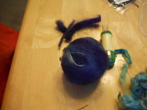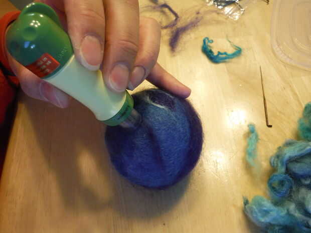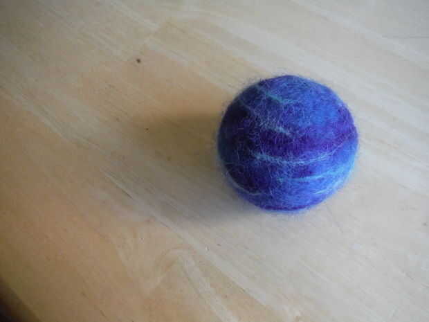 Neptuno tiene un color base azul oscuro húmedo primero de fieltro en una bola de espuma de poliestireno de 3 pulgadas. Azul oscuro o púrpura oscuro realmente es fieltro de aguja en volutas amplia alrededor del planeta, y luz azul es fieltro de aguja a continuación en volutas más delgados alrededor del planeta (no se olvide gran tormenta azul de fieltro de la aguja Neptuno). Mojado sentía todo juntos en el planeta y suavemente secar con toalla.