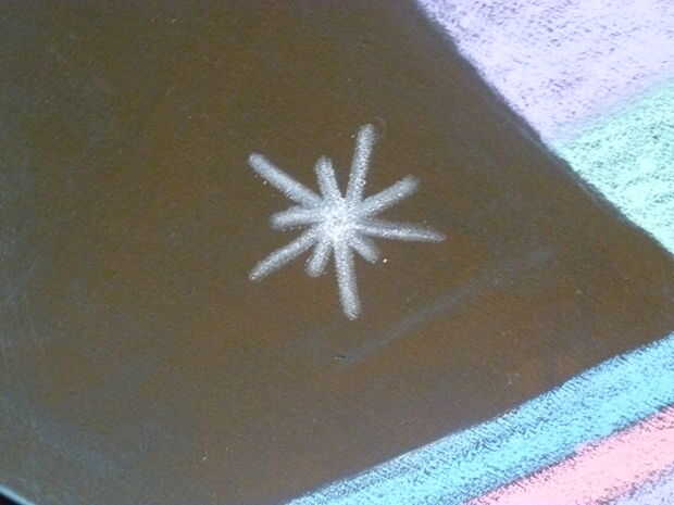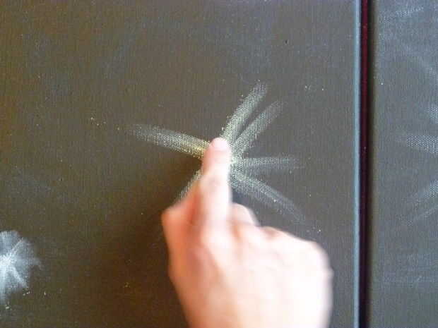 Para las estrellas, he utilizado dos técnicas diferentes. La primera técnica consiste en dibujar un círculo en tu lienzo aproximadamente 1/2 de diámetro. Luego, tomar el dedo y tire de la tiza para crear un efecto de iluminación. La segunda técnica consiste en dibujar un círculo alrededor de 1/2 pulgada de diámetro y luego extraer radiantes del círculo (alternando entre líneas largas y cortas) al lado de uno a otro. Luego, tome con los dedos y difuminar cuidadosamente cada línea.