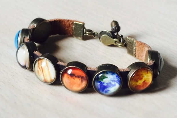 este es el sistema solar usando una máquina de corte láser (^^)La parte del planeta es de acrílico.La parte del "sistema solare" es cuero.Extendió el documento que imprime un diseño solar bajo el sol.Y bordar la órbita del planeta con la línea d