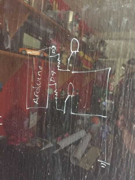 Por último, con el fin de obtener notificaciones acerca de los niveles, estoy usando para leds; el cableado se muestra en el último 3ro. imagen. Conectar el ánodo (la pierna más larga y positiva) de su LED con conector de salida digital 5 en la tabla a través de un resistor de 100K. Conectar el cátodo (la pierna más corta, negativo) directamente a la tierra; lo mismo para el último LED, esta vez conectado al pin de salida digital 6. (La imagen no refleja las conexiones a los pines adecuados, por favor actualice su código o su cableado).
