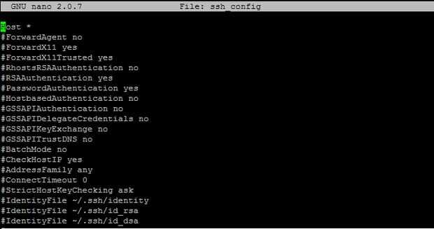 Para hacer esto necesita otra vez para abrir una ventana de consola o de la línea de comandos y escriba "sudo nano /etc/ssh/ssh-config"