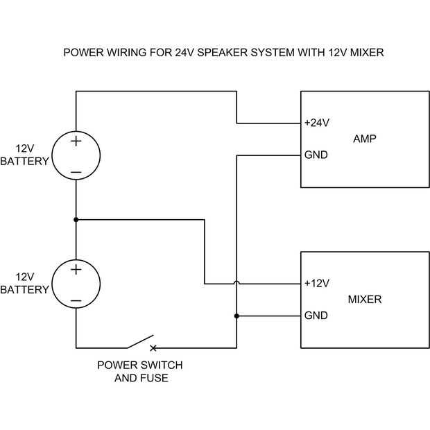 - Debe conectar los cables de tierra entre el amplificador y mezclador, o va a recibir zumbidos o incluso dañar el amplificador. Con un sistema de 12V esto es fácil, el amp y el mezclador se deben ejecutar desde la misma batería de 12V.