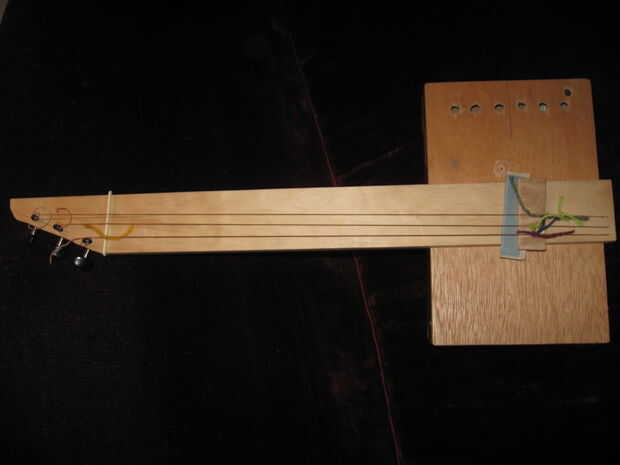 esto es una variante fácil de la guitarra de la caja de cigarros pero con un zumbido puente hacer sonidos que recuerdan a un drone de sitar. Una de las grandes cosas acerca de este proyecto es que hay no hay medidas críticas, casi cualquier configuración va funcionar bien. La cavidad resonante no tiene que ser una caja de puros, puede ser cualquier cosa, desde latas de galleta, cascos para la tradicional calabaza.