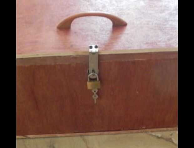 5. Coloque el lado que quedó sin utilizar en el cuadro de abrir con bisagras. También Coloque un candado y asegúrese de que cierra bien.