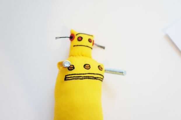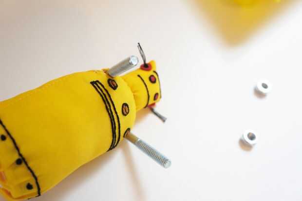 Pegue las tuercas en el extremo de las manos del robot.