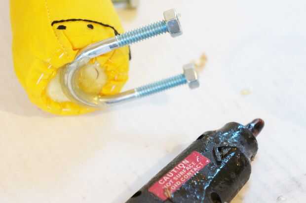 Tuvimos que utilizar un martillo para hacer la parte u de perno en u más amplia para el cuerpo de robots, ver foto.