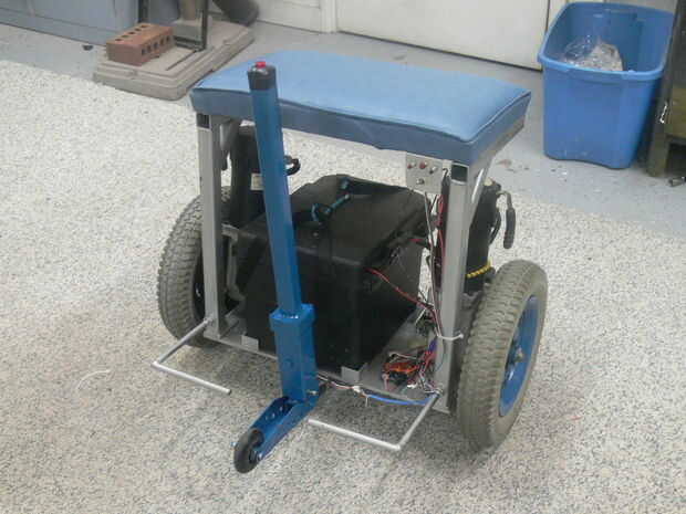 Este es mi segundo proyecto con una silla de ruedas eléctrica desechada. Los motores son muy confiables y gran esfuerzo de torsión. Se usan 24 voltios y tiene gran variedad utilizando dos pilas de tractor de jardín tipo U1. Se puede ir todo más barato que eso.
