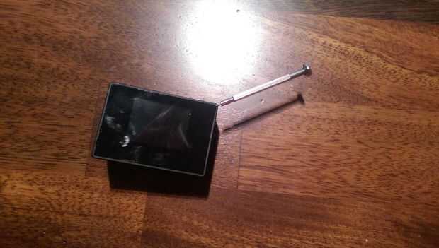 Utilice un destornillador muy pequeño de cabeza plana para Levante y retire la cubierta de la pantalla de la parte posterior. Cuando usted consigue el destornillador por debajo de la diapositiva alrededor de la parte posterior de la tapa y y pelar apagado. Se pegará en finalizado.